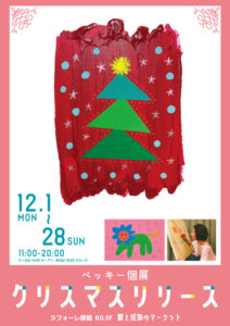 \ 個展開催決定/ 目次 \ 個展開催決定/ 『クリスマスリリース』 日程:12月1日〜12月28日 場所:ラフォーレ原宿 B0.5F 愛と狂気のマーケット 愛と狂気のマーケット | ラフォーレ原宿 「愛と狂気のマーケット」は、あらゆる才能と出会いを楽しむマーケットです。今、原宿に必要なのは、個性が輝いて、才能が次々と生まれ、育ち、羽ばたく街へ… www.laforet.ne.jp ぜひお越しください! ≪ 前の記事
